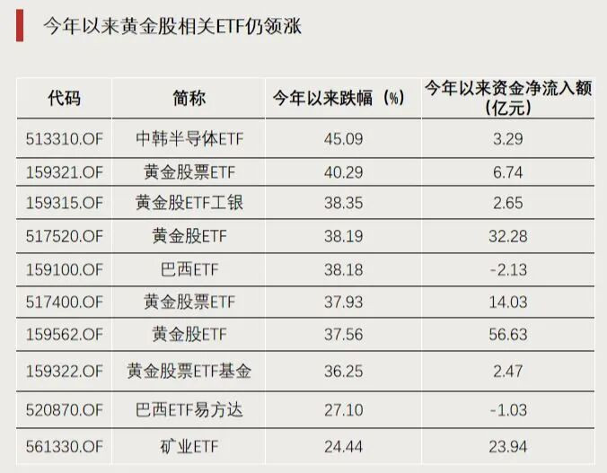 {jz:field.toptypename/}此外,中韩半导体ETF、巴西ETF今年以来涨幅也位居前列。