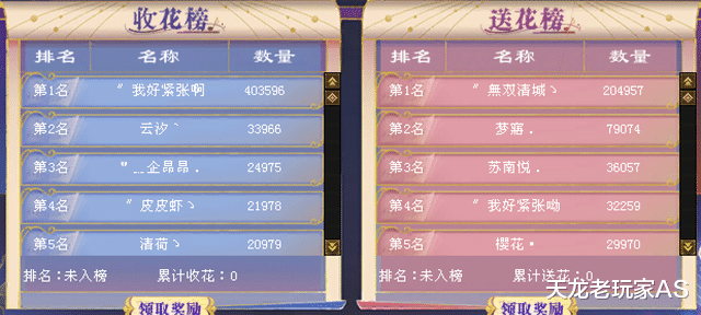 一稔榜只消【纵横沙场】卷了少许,榜一 差未几送了近20万朵花。有酷好的是新区【大展鸿图】的收花榜榜一榜二只差了42朵!险之又险!
