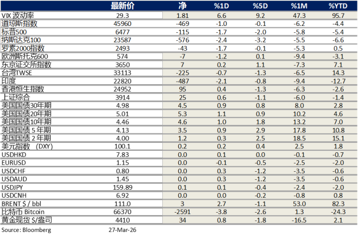 特朗普将打击伊朗能源智力的期限延至4月6日,并未化解阛阓的核心矛盾,仅是推迟了计帐时点。地缘尾部风险暂缓,但拖得越久,其对通胀预期、战术旅途及金融条款的次生冲击越难被苛刻。在咱们看来,信得过的风险已非“标题冲击”,而是握续高企的能源价钱与被推迟的战术宽松,正稳固侵蚀股市的估值韧性。
