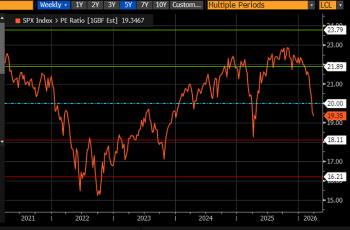 标普500往时五年平均市盈率为20倍-2022年低点曾下探至