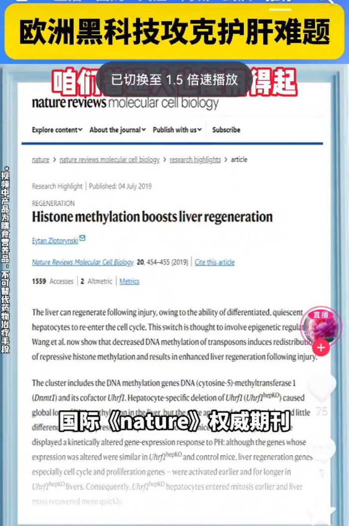 主播还称,该产物有10年的东谈主体推行求教,长生花要素来自法国科西嘉岛,公共惟一此地栽植了200亩,它不错促进肝细胞再生。“这项策划论断发表在《当然》期刊,讲明不错通过DNA甲基化促进肝细胞再生。”