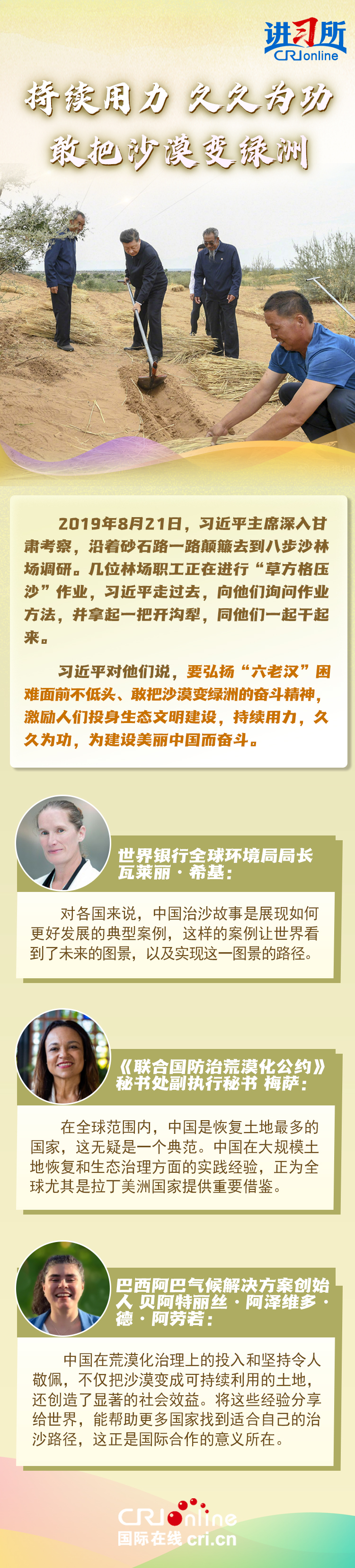 中共十八大以来,澳门游戏网中国丛林面积和积蓄量抓续“双增长”,萧索化和沙化地皮面积抓续“双缩减”,是全球增绿最多最快的国度。习近平主席恒久身膂力行:在北京相连14年干涉皆门义务植树动作,在甘肃与林场员工一齐进行“草方格压沙”功课,在陕西躬行“验收”秦岭生态保护……