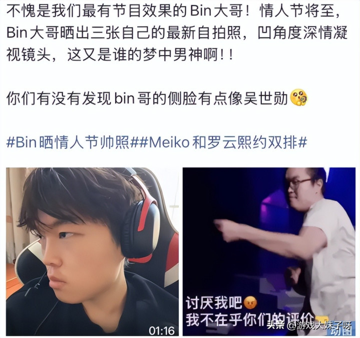 bin在情东说念主节晒出3张自拍,双眼皮彰着,粉丝称撞脸吴世勋,这段技术,围绕BLG上单选手Bin的扣问险些没停过,赛场上,他景象清爽,匡助队伍拿下通例赛第二,赛场外,他的“自信发言”和时常晒照相通成为话题着手。