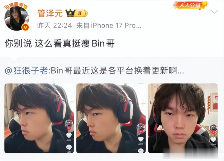 客不雅来看,两东说念主气质与五官并不调换,但“费解之间像一下”的打趣,未必诠释粉丝对他的关爱点已从操作延长到外形,这类扣问之是以能发酵,一方面是Bin本人话题属性强,质直、敢说、带点少年气。