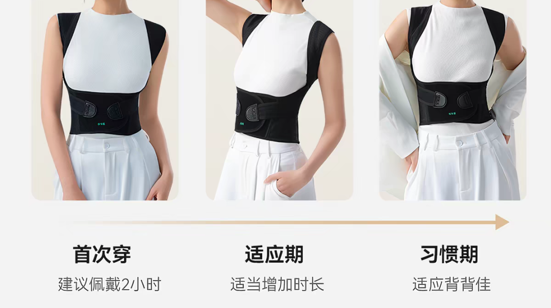 为此,目前的可孚医疗对其有了更严谨的界说,官网上的形色是:一款通过生物力学禁锢改善身形的穿着式物理类辅助用具,主要弃取弹性材料在肩背施加向后向下的定向牵引力,从而达到抵拒含胸驼背的前倾力矩,强制掀开胸椎曲度,削弱脊柱压力。
