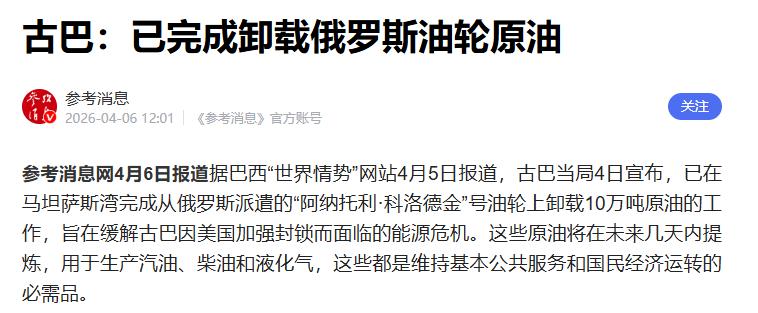 让东谈主暖心的是这还不是终了,就在4月2日,俄罗斯一经告示,将嘱咐第二艘满载石油的油轮赶赴古巴,俄方高层明确暗意古巴正遭受严重的阻塞,急需原油和制品油保管国度运转、保险电力供应和各人医疗劳动。