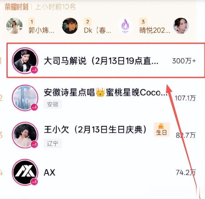 大司马开启首播,一小时收入达30万,PDD和小团团也前来耸峙物,2月13日晚,停播两年多的大司马厚爱复播,本来不少东说念主以为直播行业更新换代极快,“芳华饭”属性显着,离开太久就会被渐忘。