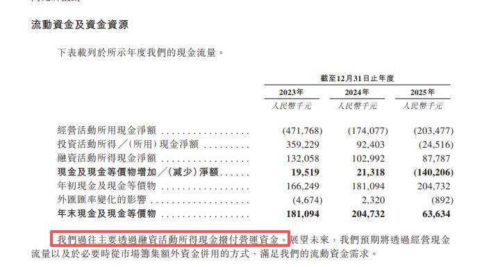 谋略行径现款流净额更能直不雅证明公司造血才调不及的问题,XREAL该项数据承接三年为负:2023年净流出4.72亿元、2024年净流出1.74亿元、2025年净流出2.03亿元。2025年的流出额反而进一步扩大。