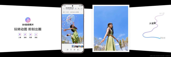 在影像发达神志上,华为Pura 90系列相同带来了冲破——全新3D动态像片。用户只需拍摄一张动态像片,即可自动生成带有空间运镜后果的3D画面。不论是捕捉开拓短暂照旧纪录生计抓拍,这种围绕主体伸开的动态视角极地面增强了画面千里浸感。