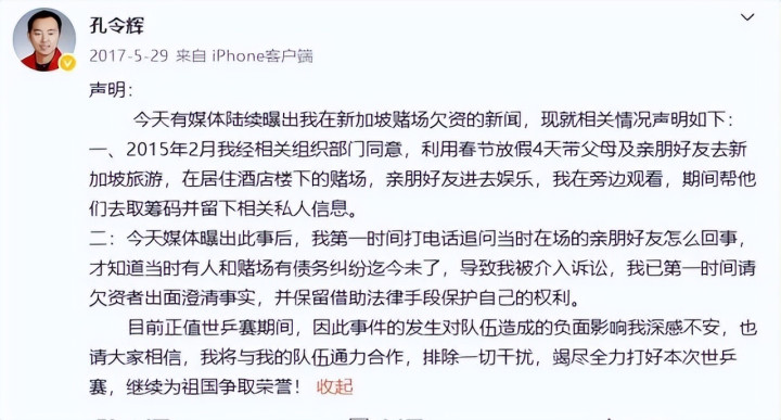他当时在德国带队世乒赛,酬酢平台发文讲明,说是2015年春节带父母亲一又去新加坡旅游,亲一又进赌场玩,他在外帮取筹码留了信息,欠款是亲一又的,已沟通处理,准备法律维权。