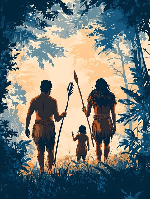 黎明:男东谈主们带着用心打磨的石矛、骨叉,分组狩猎鹿、野猪、致使鬣狗